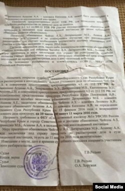 Çubarovnıñ Qırım cedvelini tizmek teklifi arfesinde belli oldı ki, Rusiyege boysunğan Qırım Yüksek mahkemesiniñ qararı mart 8-de gece bitken olsa da, «fevral 26 işiniñ» iştirakçileri azatlıqqa çıqamazlar.