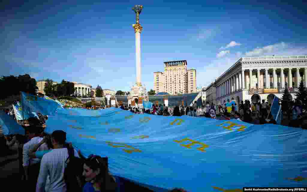 İyün 26-da Kyivde Müstaqillik Meydanında Qırımtatar bayrağı künü münasebeti ile miting keçti. Tedbirniñ başında Ukraina ve qırımtatar halqınıñ gimnleri yañğıradı, Meclis azası Eskender Bariyev ise qırımtatarlarnıñ milliy temsiliniñ tarihı aqqında ikâye etti. Ondan ğayrı, Qırımtatar Milliy Meclisiniñ reisi Refat Çubarov kiriş sözü ile çıqışta bulundı.